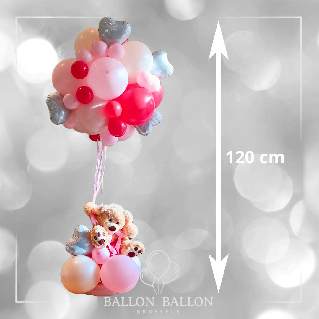 Deze luchtballon van 120 cm met zijn knuffel die een wolk van biologisch afbreekbare latex ballonnen vasthoudt, is perfect voor..,