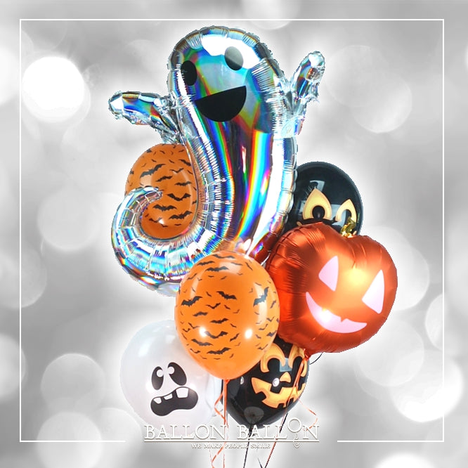 Notre bouquet HORRIBLE Halloween est une combinaison de ballons remplis d'hélium, dont 1 ballon géant en aluminium.